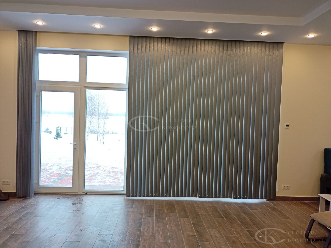 Если в вашем доме есть французские окна до пола, стеклянные двери на террасу, двустворчатые конструкции или большой эркер – вертикальные жалюзи созданы именно для таких оконных систем.