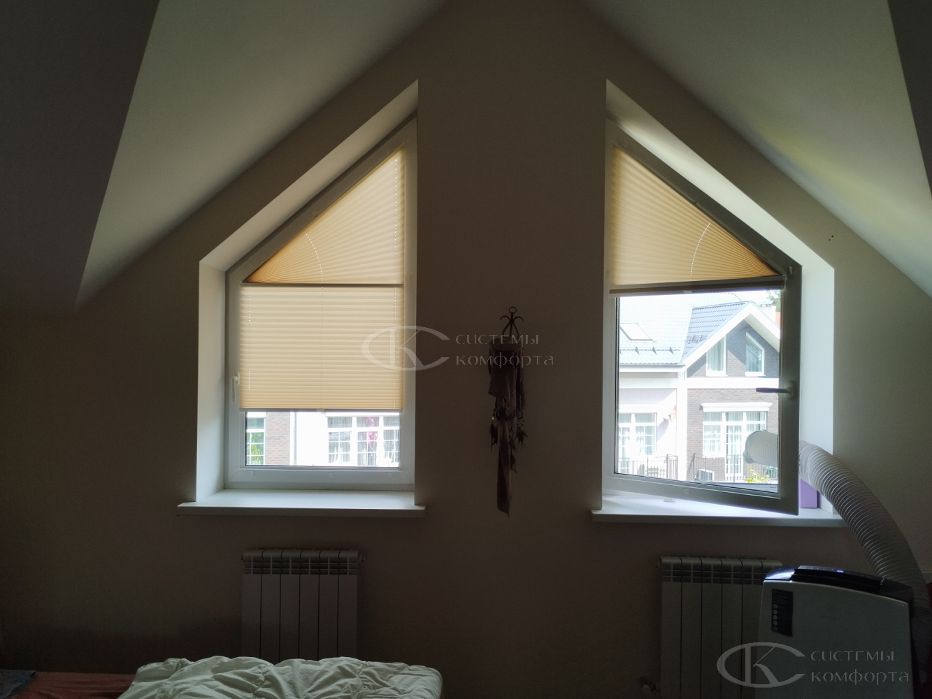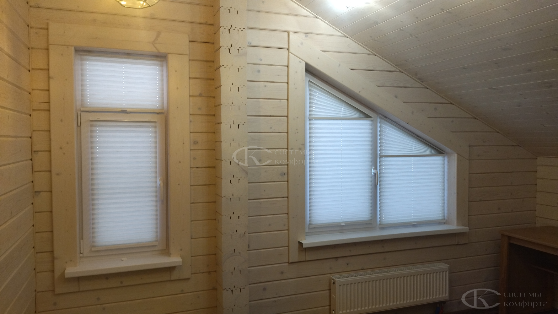 Их конструкция представляет собой ткань, собранную в равномерные, изящные складки-гармошки, способные изгибаться по заданной траектории. Именно эта особенность делает плиссе единственно верным решением для треугольных, арочных, трапециевидных или круглых окон, которые часто становятся архитектурной изюминкой загородного дома.