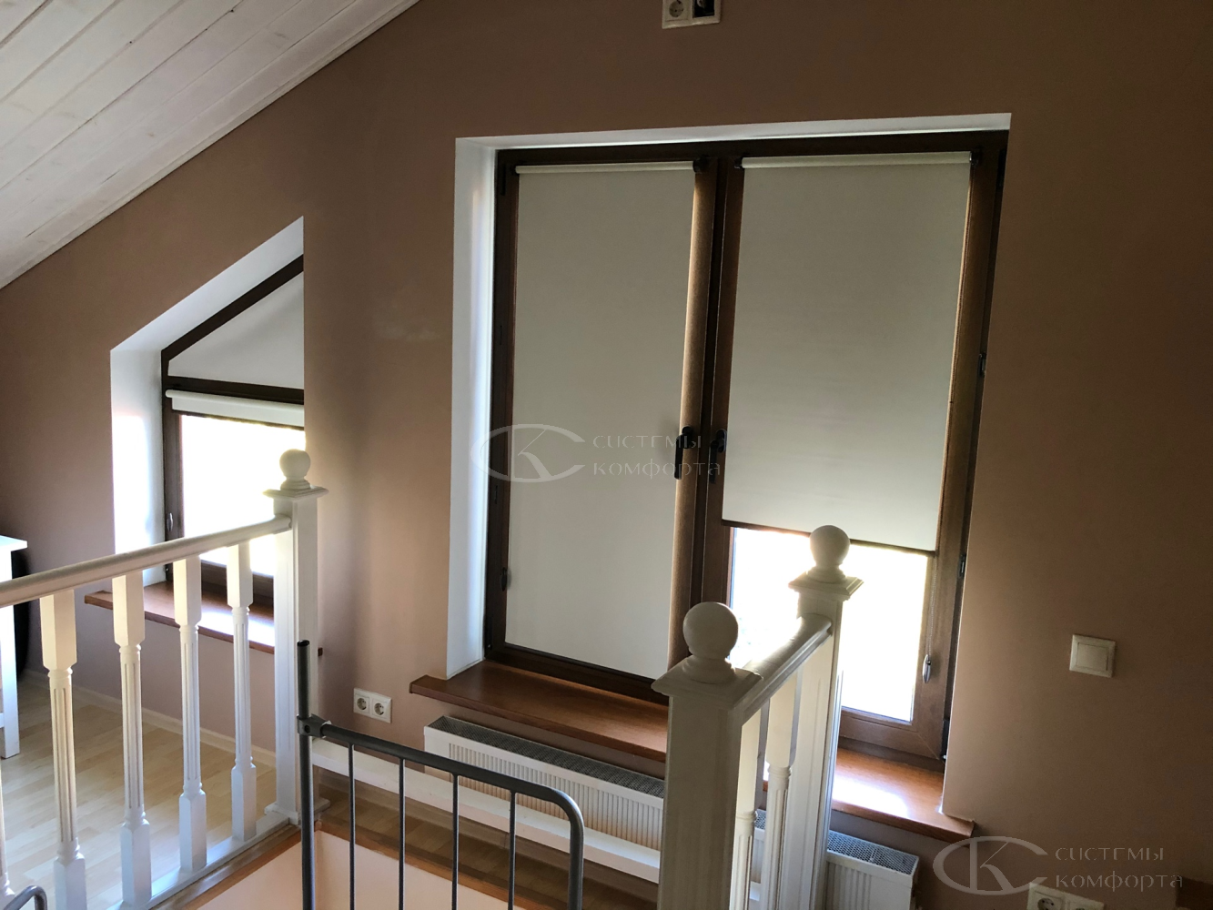 Для больших или высоко расположенных окон идеально подходят автоматические системы с электроприводом. Управление с пульта или со смартфона добавляет комфорта и относится к элементам современного «умного дома».