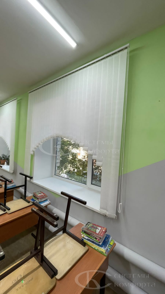 Вертикальные жалюзи часто используют в школе по причине функциональности и экономичности. Такие жалюзи позволяют быстро регулировать световой поток, но они же чаще всего и ломаются. Из-за неправильной эксплуатации тканевые ленты и пластиковые элементы путаются и обрываются. Особенно часто ломаются при проветривании помещения. Если неправильно выбрать высоту изделия, то они будут сметать грязь с пола или с подоконника.