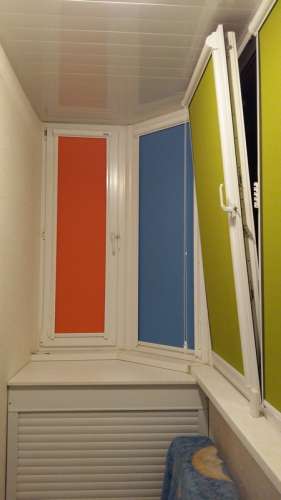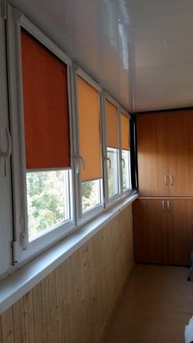 Рулонные жалюзи на балкон устанавливают на распашные или откидные рамы. Не подходят для раздвижных створок. Для изготовления используются ткани различных цветов и фактур. Рулонные шторы бывают свободновисящими или кассетными. Вторые удобны тем, что полотно не болтается на ветру, а направляющие из алюминия защищают полотно от пыли и копоти, летящих с улицы.